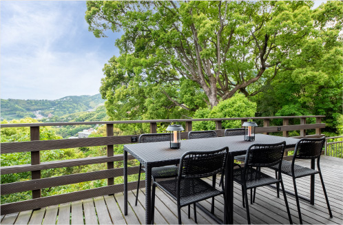 どこか懐かしく居心地の良い空間でありながら、熱海市内を見下ろす贅沢な景色が特別感を演出します。ご夫婦やカップル、ご家族で気軽にリゾートをお愉しみください。